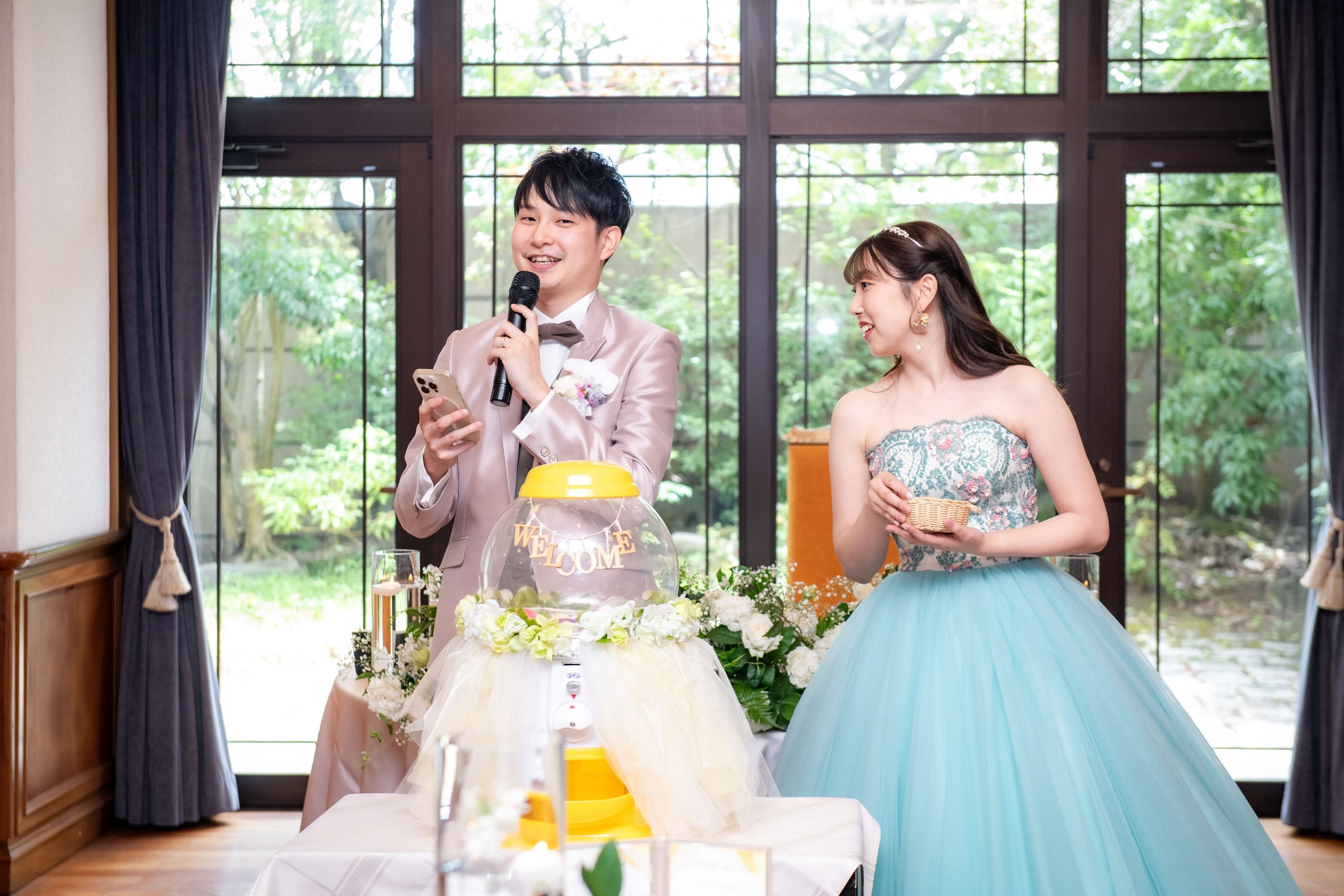 家族だけの結婚式だったので、皆と写真を撮ったり話す時間を多めに作りました。ウェルカムガチャで楽しんでもらえるように考えました。